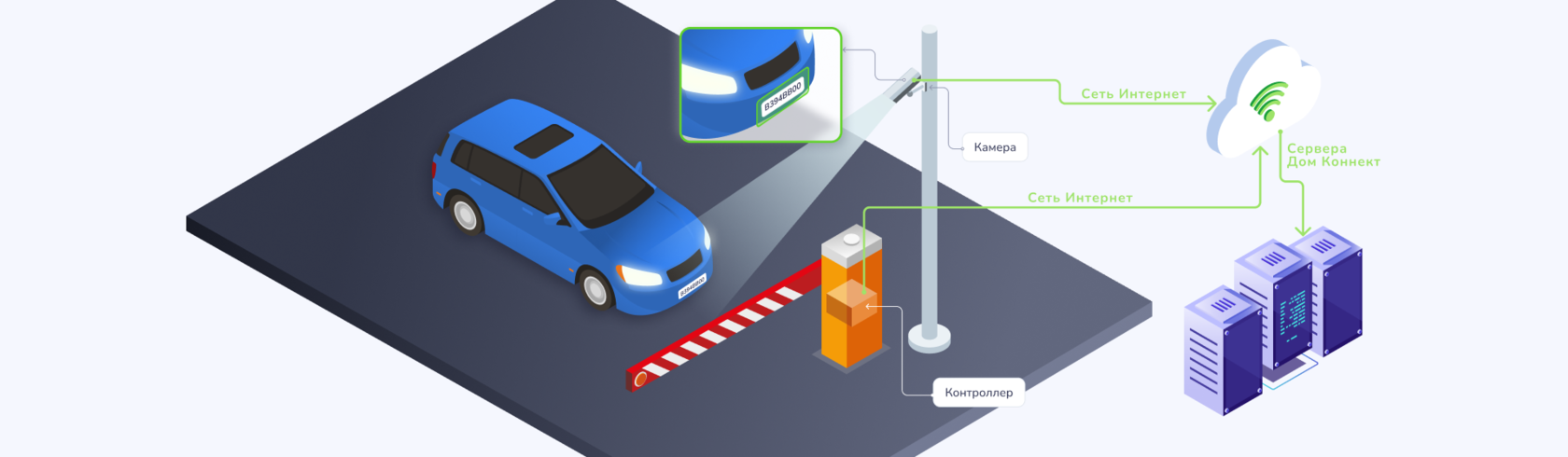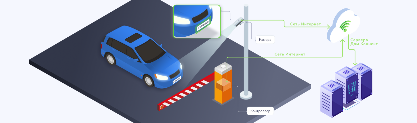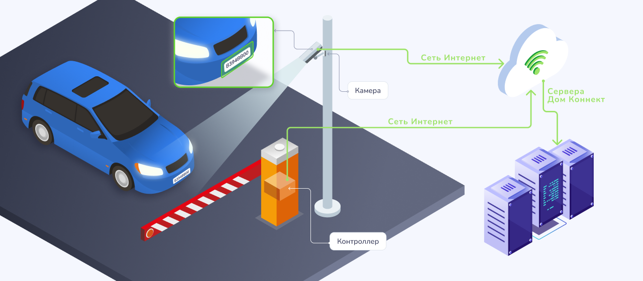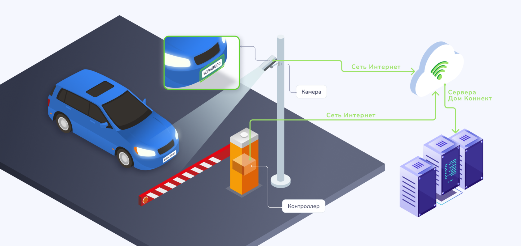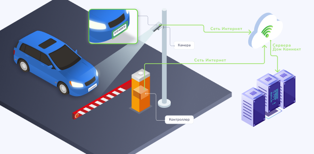 Система автоматически открывает шлагбаум или ворота, когда определяет спецтранспорт